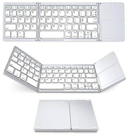 商品のご説明 Bluetooth キーボード 折りたたみ式 コンパクト タッチパット付き ワイヤレス 64キー スマホ スマートフォン タブレット専用 bluetooth 折りたたみキーボード 備考 ◆持ち運びやすいコンパクトサイズの折りたたみワイヤレスキーボード ◆タッチパネル式でマウス不要! 折りたたみ時サイズ:約152 * 98 * 18mm 使用時サイズ:約304.5 * 98 * 8mm 重さ:150g 特徴:タッチパネル付き、三つ折りで収納可能、Bluetooth 対応OS:Apple Android Microsoft バッテリー:リチウムバッテリー バッテリー容量:140mah