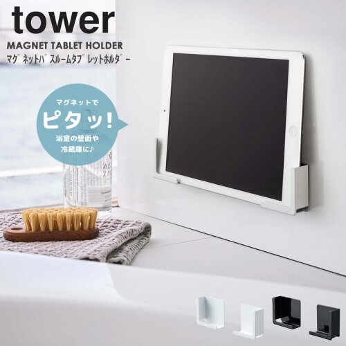 【めざましテレビで紹介!】マグネットバスルームタブレットホルダー 山崎実業 タワーシリーズ マグネット タワー tower マグネット お風呂 半身浴 バスルーム 磁石 スタンド タブレット スマホ ラック 壁面 iPhone pad 収納 ホワイト ブラック 4981 4982 netc5