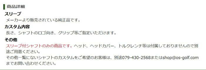 その他一覧にないシャフトのカスタムをご希望のお客様は、別途079-430-2568またはshop@os-golf.comまでお問い合わせください。