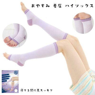 就寝用 着圧ソックス おやすみ 着圧 ハイソックス レディース 女の子 かわいい パープル テレワーク オフィスワーク 旅行 スポーツ 立ち仕事 看護師 ふくらはぎゆったり 足首は強圧 寝ている間にスッキリ引き締め (mm-1286)[ネコポス]【送料200】【あす楽対応】