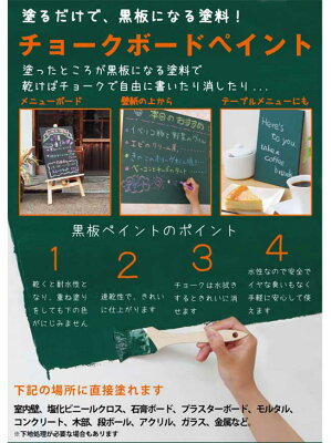 性質/成分 水性/合成樹脂(アクリル)・顔料・有機溶剤・防カビ剤・水 目安:4L:2.5〜3.5平米(2回塗り)関連商品 ●チョークボードペイント 170mlボトル入り ●チョークボードペイント 600mlボトル入り 黒 ●チョークボードペイント 4L 黒 ●チョークボードペイント 600mlボトル入り 緑 ●チョークボードペイント 4L 緑